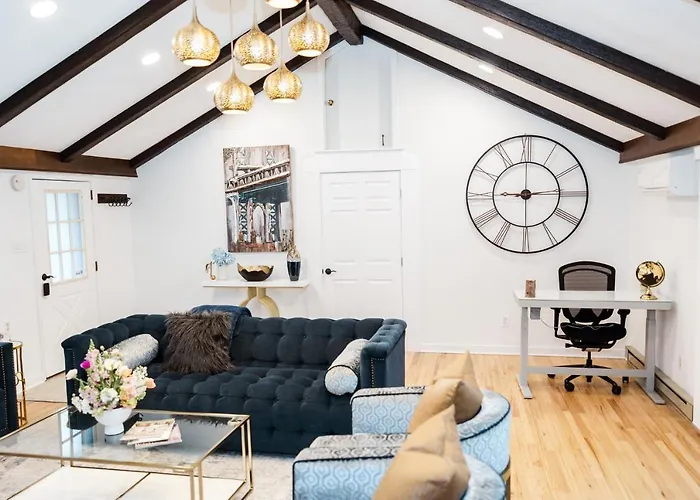 The nearest airport is Trenton-Mercer and it is placed within 30 minutes' drive from Cowry Acres - 11 Acre Enchanted Retreat, Hot Tub villa.